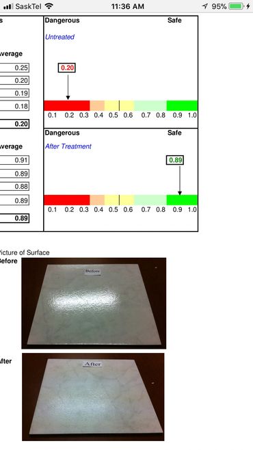 Our non-slip solution will work on any surface to create a microbial sized spiked surface that provides traction to all types of foot wear- wether wet or dry.